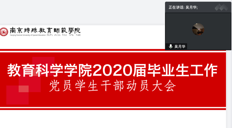 为进一步做好2020届毕业生就业工作,7月19号下午13点,德赢VWIN在腾讯会议云端召开了2020届毕业生就业工作“双包干”学生党员、班干部动员大会。德赢VWIN党总支书记吴月华老师、学工办李国敏老师、毕业班辅导员符昱叶老师,及教科院全体毕业班党员、毕业班学生干部参加会议。会议由李国敏老师主持。