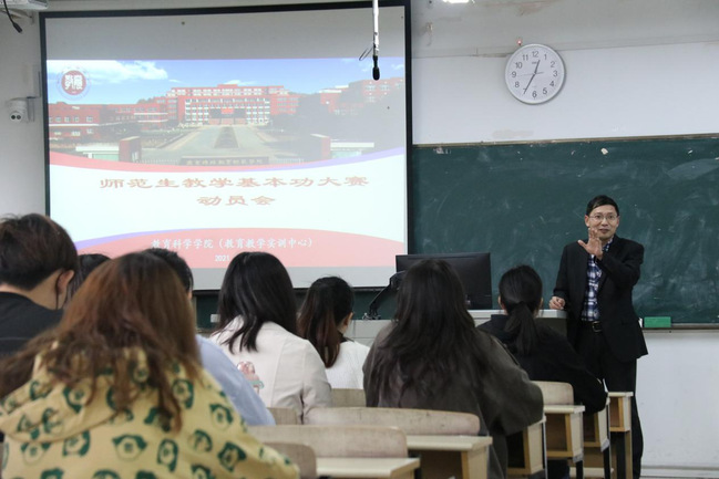 大会伊始,刘新学院长对师范生教学基本功大赛的背景和意义做了阐述,并提出期望与要求,他希望同学们能够放平心态、练好基本功,争做优秀师范生,为学院力争荣誉。随后,万谊副院长就师范生教学基本功大赛赛事的安排做了阐释,向同学们详细解说了本次大赛的活动内容、活动对象、时间安排以及各项比赛的具体要求。