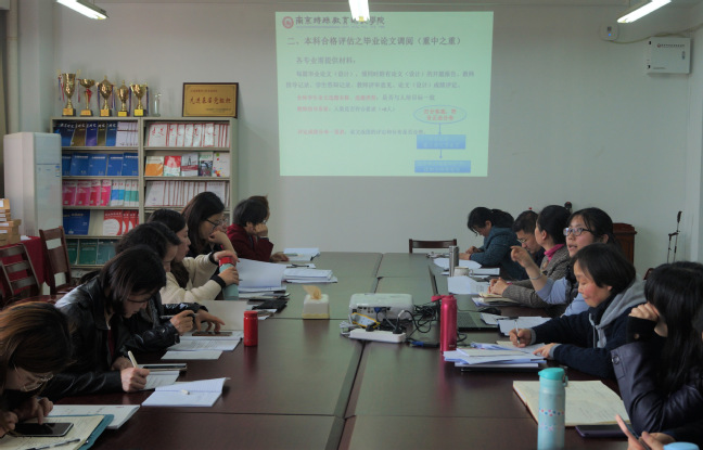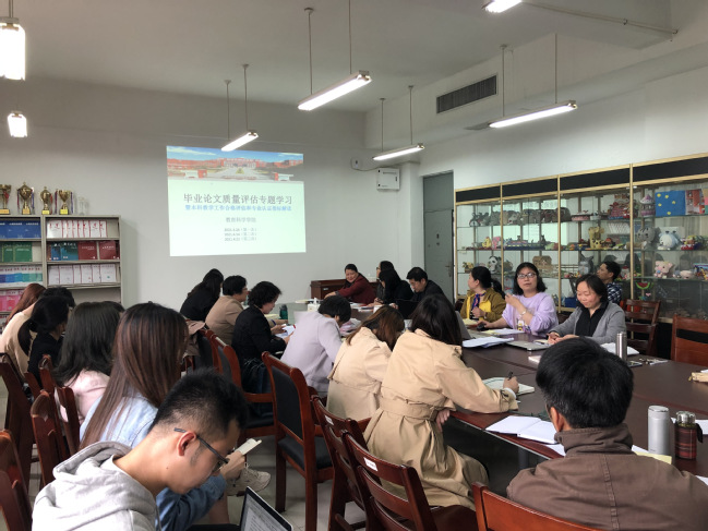 当前正处于2021届学生毕业论文的修改阶段,专题学习聚焦质量提升,围绕不同主题开展了为期三周的研讨与学习。2021年3月24日首次例会,全院论文指导教师围绕本科合格评估指标,对毕业论文相关指标及观测点内涵进行了解读,老师们结合各自指导的问题进行了热烈讨论,了解了专家进校对论文评估的要求。4月14日第二次会议围绕老师们会前反馈的意见,重点针对毕业论文要的具体要求进行了再次讨论,明晰了心理学和学前教育专业在毕业论文撰写方面的差异化要求,老师们对论文框架和参考文献的格式等问题进行了再讨论,学院内部达成了较为一致的意见。4月21日第三次会议重点学习了《南京特殊教育师范学院学生毕业设计(论文)工作管理办法(试行)》文件精神,重点学习了论文指导的规范要求等内容。同时,学院反馈了学校教育评估中心对论文中期检查出具的评估报告和学院修改意见,结合我院实际情况,逐项对照,进行了深入讨论,力求规范论文指导过程,提高论文文本的撰写质量。