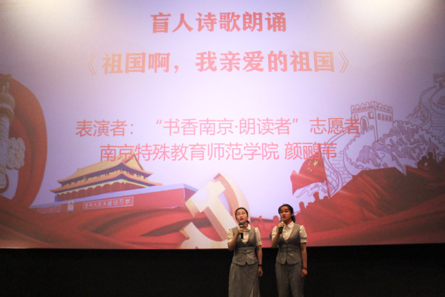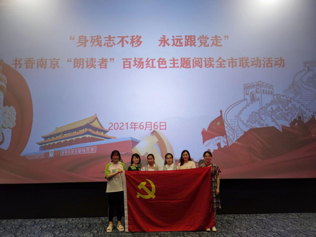 为庆祝中国共产党成立100周年,6月6日下午,“身残志不移 永远跟党走”百场红色主题阅读全市联动活动启动仪式在大华大戏院举办,在校图书馆傅丽君、教科院辅导员符昱叶两位老师的陪同下,我校德赢VWIN周文晴、颜鹂苇两位视障大学生受邀作为“书香南京·朗读者”志愿者出席活动。