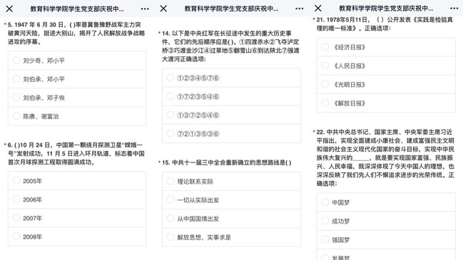 本次活动以网络答题为主要形式展开,以党的发展历程为线索,内容涉及政治、经济、文化等方面。竞赛题目涵盖党史、新中国史、改革开放史、社会主义发展史等,具有鲜明的时代烙印。无论是细节的考量还是时间节点的意义,蕴含其中的宝贵经验与重要启示使同学们在思考的同时也有了更多收获。