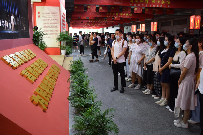 为庆祝中国共产党成立100周年,回顾中国共产党百年奋斗的光辉历程,展望中华民族伟大复兴的光明前景,7月3日下午,德赢VWIN辅导员李维翔老师带领全体学生党员、入党积极分子参观学习“百年征程 初心永恒”中国共产党在江苏历史展。