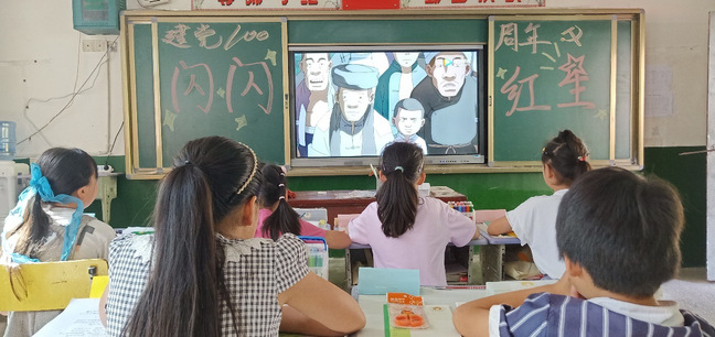 学生党员秦国浩通过播放孩子们喜闻乐见的动画电影《闪闪的红星之红星小勇士》,让孩子们感受到主角潘冬子的机智、勇敢与坚强,也懂得了今天的幸福生活是无数革命先烈用鲜血和生命换来的。秦国浩更是叮嘱孩子们:“希望你们也像冬子那样,时刻不忘自己肩负的重任,严格要求自己,从点滴做起,从现在做起,以顽强的拼搏精神,争做一名新时代的小英雄。”