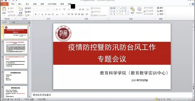 7月27日上午,德赢VWIN在线召开了疫情防控暨防汛防台风工作专题会议。会议由该院党总支书记吴月华主持,学院全体教职工参加。