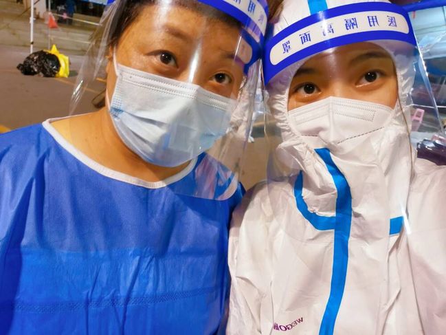 由于核酸检测信息录入人员紧张,第四轮核酸检测时,林梓䶮同学加入了园林社区信息录入的志愿队。八月酷暑,气温虽高,但为了安全,信息录入员必须穿着防护服,佩戴双层手套以及防护面罩进行工作。前十轮检测,林梓䶮同学负责三个小区的信息录入,由于医护人员数量有限,每日志愿者工作需要进行10小时以上,最晚至深夜11:30才结束。身穿防护服的她衣物被浸湿多次,双手因无法透气发白肿胀,额头鼻梁满是嘞痕,面罩内也被“雾气”笼罩。她曾想放弃,是社区志愿者们和并肩作战的医护人员的鼓励,无私奉献的志愿者精神以及“博爱塑魂”的校训激励着她坚持下去。她说:“检测时真的很热很累,但是每当人们微笑着对我说谢谢时,我都很感动。身为一名共青团员,为民服务,为家乡做贡献,再苦再累都值得。”
