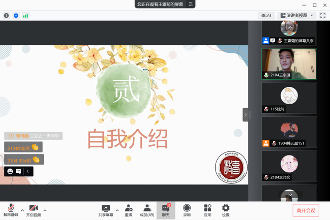 根据学校教学安排,9月13日新生已开始线上教学,正式开启了大学生活。为帮助2021级新生树立良好精神风貌,加强新生沟通交流,传承博爱自强精神,德赢VWIN2021级8个班级分别于开学第一周召开线上第一次主题班会——新朋友,新集体,新征程。班主任、辅导员、新生副班以及2021级全体同学参加了会议。