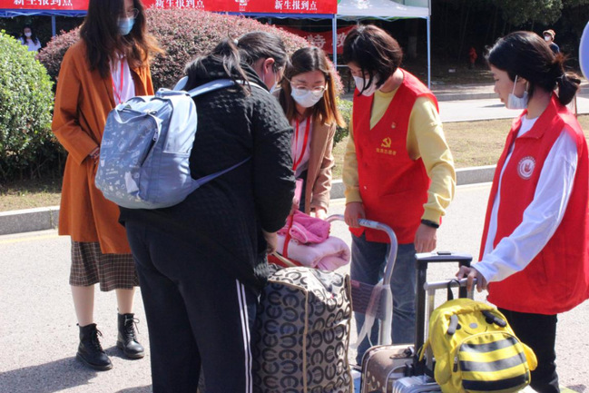 10月12日早上7点,所有志愿者整装待发,在我院新生报到处等待新生的到来。迎新期间,我院学生党员兵分两路,党员志愿小队冲锋在前,有的帮忙搬运行李、有的帮忙引导到报到处进行注册登记、有的在新生宿舍帮忙引导、搬运床褥,所有志愿者一直跑前跑后忙碌着。另一队在我院报到处接收新生咨询,耐心细致回答新生关于报到流程、学院情况、党团事宜等问题,面对新生的突发情况,党员志愿者不慌不乱,给出解决方式,给新生带来一注强心剂,有条不紊完成注册报到手续。“咨询处”的设立不仅增加了党员志愿者为同学服务的途径,更强化了我院学生党员的服务意识。整个迎新工作中,学生党员分工明确、互相合作、服从指挥,热情周到地为学弟学妹们提供贴心服务,他们身穿志愿者服装、佩戴党员徽章,一个个忙碌的红色身影穿梭在校园的各个角落,构筑起了一道靓丽的校园风景线,突显出党员“不怕苦、不畏难”的精神。