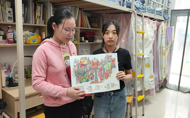 报到当天,花锐同学在学院志愿者的陪同下做完核酸检测后,到达学院新生接待点。视障生党员颜鹂苇将学院定制的大字号版校园手绘地图、暖心水壶和护眼台灯交到花锐手上,欢迎她成为南京特师德赢VWIN的一员。颜鹂苇说:“当时我们也是在周文晴她们几位学姐的帮助下熟悉校园,现在我也非常愿意带领新同学认识学校,也欢迎新同学成为我的舍友,一起学习,共同进步!”