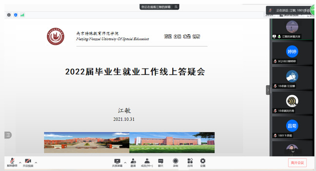 为了让毕业生尽早熟悉就业工作进度安排,德赢VWIN于2021年10月31日召开2022届毕业生就业工作线上答疑会议。本次答疑会由该院辅导员江敏老师主讲,2022届全体毕业生参与本次会议。
