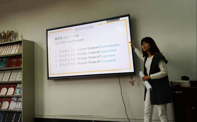 课后,学院领导和学前教育专业的教师针对学前融合教育课程作为双语授课的试行的可行性、教材选择以及授课内容等方面进行了讨论。一致认为,周易老师的双语课英语熟练、表达准确,可以在卓越班的学前融合教育课程的授课中试行,同时也需要进一步切实提高学生的专业英语水平以及直接使用英语从事科研的能力,以更好地适应社会的需求。(周易)