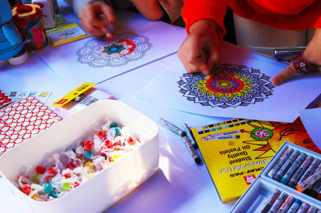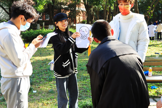 游园会筹办与宣传工作于11月初开展,在学院领导的高度重视和支持之下,学院活动组织小组积极讨论、精心策划,准备了一系列趣味性强的心理游戏和精美小礼品。同时也在qq和微信等平台加强宣传,为活动预热,调动同学们参加活动的积极性。游园会活动期间,我院志愿者和工作人员分工明确,热情地向同学们介绍活动流程和规则。同学们积极参加“爱的抱抱”、“以绘解心”、“见颜知意”、“数马得马”等丰富多彩的游戏项目。游戏过程中,同学们与各自的搭档相互配合,在交流与协作中培养默契,在互动与竞争中拉近距离。其中“以绘解心”、“见颜知意”游戏分别从色彩心理学和情绪心理学的视角出发,让大家在艺术性绘画中疗愈自我,在情绪宣泄中释放自我,绽放自我。现场气氛活跃,同学们在游戏中敞开心扉、感悟心灵,触摸和感知到更真实的自己。游园会最后,同学们将自己的疑惑、憧憬和梦想写在便签上并粘贴到展板上,与朋辈和老师分享自己的学习与生活,通过沟通交流释放压力与焦虑抑或收获双份快乐。