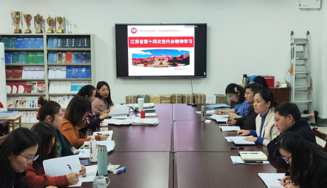 为全面落实党的十九届六中全会精神,围绕“强富美高”总目标,“争当表率、争做示范、走在前列”总要求,深化“两聚一高”新实践,同时加强基层党组织建设,时刻把握党建工作方向,提升教师党员素质能力。德赢VWIN于2021年12月22日在博雅楼3401会议室召开江苏省第十四次党员代表大会精神学习会,全体教师党员参加。