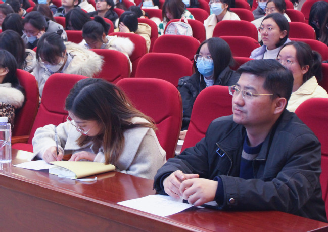 王所长从“什么是电信诈骗”、“高发电信网络诈骗类型”、“如何识别防范网络诈骗”和“被骗后的补救措施”四个方面深入进行讲解。王所长首先例举当前学生经常遭遇的诈骗事件,结合自身工作经验,以现实案例的方式指出电信网络诈骗非接触性、技术性、远程性的特点,并依次介绍受骗群体、诈骗产业链等相关知识。其次,王所长详细讲解了9种诈骗类型58种诈骗手法,着重分析网络投资诈骗、冒充客服诈骗等6种类型,并辅以视频加深同学们的印象。生动的反诈骗案例视频和深入透彻的剖析,引起在场同学的阵阵掌声。在如何识别防范网络诈骗的部分,王所长采用朗朗上口的反诈口诀告诫同学们遇事冷静分析、三思而后行,不要给违法分子提供可乘之机。最后,王所长为同学们介绍了身边潜在的安全隐患,提醒同学们增强自我保护和自我防范意识,牢牢构筑防范电信网络诈骗的自身防线。