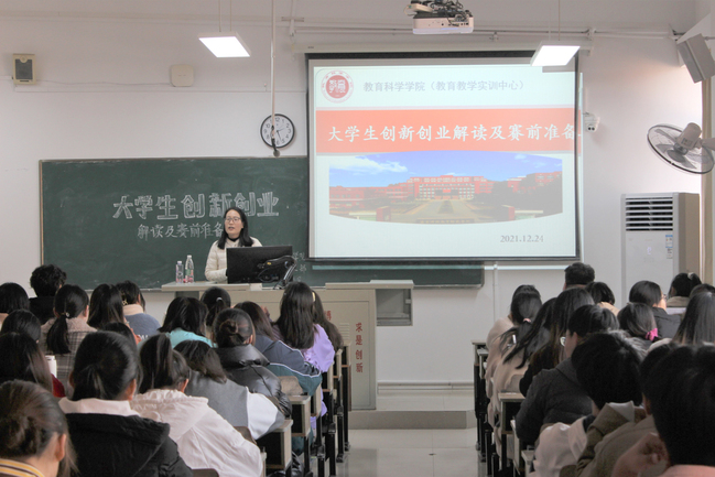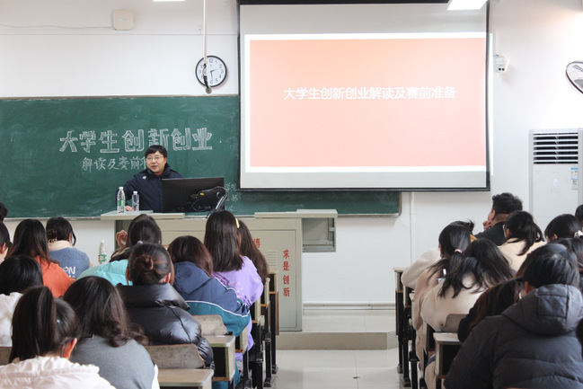 为响应国家科教兴国战略,推进大学生对创新创业的理解,增强团队协作能力,提高科研能力与创新素养,培养德智体美劳全面发展的新时代大学生,德赢VWIN于12月24日在博雅楼举办“大学生创新创业解读及赛前准备”主题讲座,本次讲座特邀南京艺术学院邢大川老师讲授,德赢VWIN学子积极参与。本次讲座由李国敏老师主持。