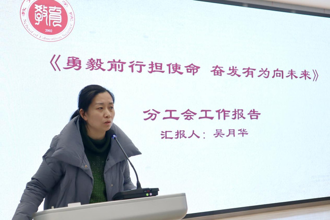 分工会主席、党总支书记吴月华作了题为《勇毅前行担使命 奋发有为向未来》的分工会工作报告,报告全面阐明了分工会一年来在校党委行政的领导下,校工会的指导下,在各职能部门的帮助下,在党史学习教育、分工会活动、教职工帮扶、校务公开、巡察整改落实等方面的扎实工作,总结了学院教职工在课程思政、教育教学、科研文体等方面获得的荣誉,同时也提出了分工会工作的不足之处及2022年分工会的工作思路,强调要在政治站位、民主管理、师德师风及作风建设上凝心聚力,再攀新高,提高分工会工作水平,为学校高水平、高质量通过“三评估一认证”而努力奋斗。