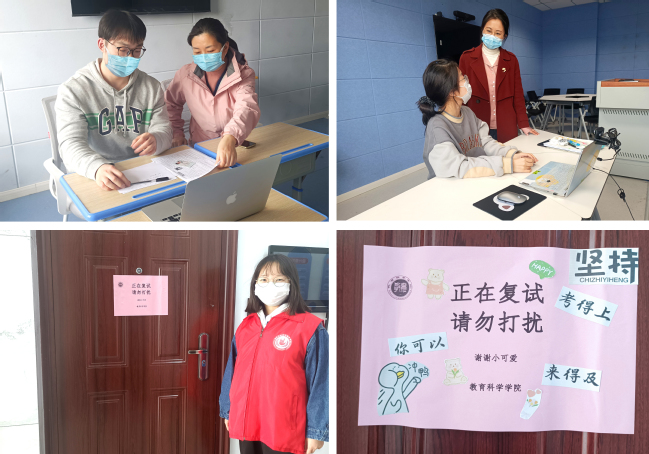 诸多细节都体现着学院领导和老师们对学子们复试的全力支持和关心。在备考期间,为保证每位学子们都能够在合适的时间最大限度地使用教室,学院每天提供教室排班服务,有效避免了由于人数过多造成场地冲突的情况发生。学院还为学子们提供了专门印有德赢VWIN的考研面试提示门贴,给予学子们元气满满地支持,并且安排志愿者在考场外维持秩序和纪律,最大限度地保证考场周围安静的环境,避免复试期间无关人员的打扰。同时,德赢VWIN党总支书记吴月华、辅导员江敏和刘智慧也来慰问正在紧张备考的学子们,为学子们加油鼓劲,鼓励学子们摆平心态,沉着冷静应对复试,并祝愿学子们顺利通过复试,取得理想成绩。