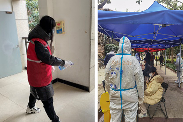 我院同学的志愿服务一直在行动,寒假期间就有同学毅然投身于疫情防控志愿工作。学生党员余佳积极响应社区号召,自愿参与志愿服务团队,在小区帮助运送物资,登记人员信息,维护核酸检测秩序,以及带领工作人员开展小区消杀工作。学生党员马智超在看到招募志愿者的信息,二话不说扫描二维码报名参加,作为一名核酸检测工作志愿者,积极配合社区安排,勇敢担起党员的责任与使命。