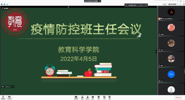 为进一步从严从紧抓好新冠肺炎疫情防控工作,切实保障学校师生的生命安全,德赢VWIN于4月4日、5日在线上分别召开疫情防控工作系列会议。本次系列会议,包含班主任工作会议、学生干部工作会议、各年级各班级班会。学院党总支书记吴月华、党总支副书记吴兴、全体班主任老师、辅导员老师出席,全体同学参加。会议围绕对新冠肺炎疫情防控工作进行了再部署,再强调,再落实。