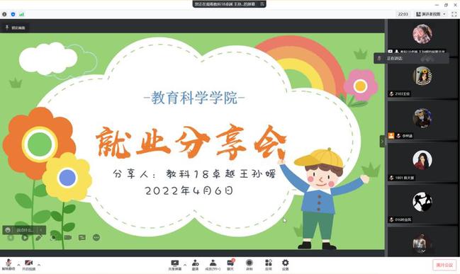 为让同学们进一步了解就业、考研的更多细节,消除疑虑困惑,对未来就业方向进行合理规划,德赢VWIN于4月6日晚在线上举办“青春无悔 扬帆起航——就业经验分享会”,本次活动邀请了就业于幼儿园、妇幼保健院等18级优秀代表们作为分享嘉宾,该院各级同学积极参与。