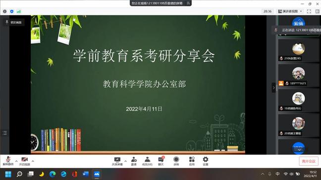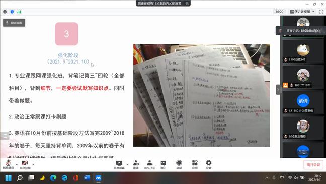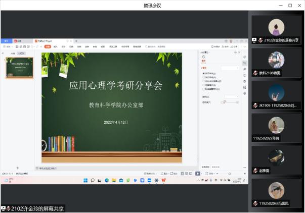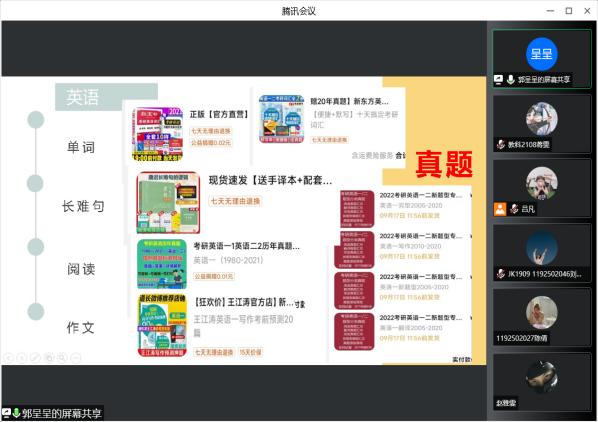 为向考研学生提供第一手考研及就业经验,消除内心疑虑,使大一同学更早接触了解考研,帮助大二大三同学更全面认识考研形势,德赢VWIN于4月11-12日举办考研就业经验线上分享会,邀请优秀毕业生分享自己的心得,该院全体学生积极参与。