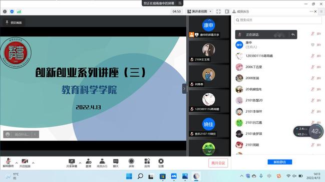为帮助同学们了解大学生创新创业训练计划、“互联网+”大赛的相关内容,以及申报书、答辩ppt的准备要求等事宜,德赢VWIN于4月13日在线上举办创新创业系列讲座(三)即创新创业训练计划、“互联网+”大赛宣讲,本次讲座特邀我校教务处实验实训科科长何燕春老师为同学们带来精彩分享,学院20、21级同学积极参与。