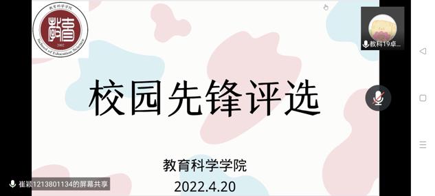 为展现在习近平新时代中国特色社会主义思想指引下“特师新青年”昂扬向上、奋发有为的精神风貌,树立典型、表彰先进,以此增强青年学生的志气、骨气和底气,强化学生们对自身责任和使命的认识,德赢VWIN积极响应校团委号召,开展“校园先锋”线上评选活动,该院党总支副书记吴兴、李维翔老师出席本次会议,该院全体学生踊跃参与。