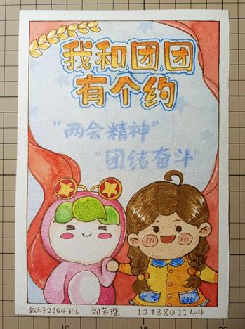 此次活动采用线上提交作品的方式,结合学前教育专业和应用心理学专业特色,作品包括书法、绘画、手工、视频、征文等,形式丰富多样。同学们积极踊跃地参加此次活动,运用丰富的想象力和创造力,制作了一个又一个主题为全国两会和中国共青团建团100周年的作品,作品中体现了同学们对于活动的热情和对国家的热爱,表达同学们对建团百年的祝福。书法作品笔势雄健洒脱,手绘海报作品主题明确、色彩缤纷,展现了教科学子蓬勃的青春活力和扎实的专业基础。