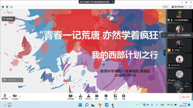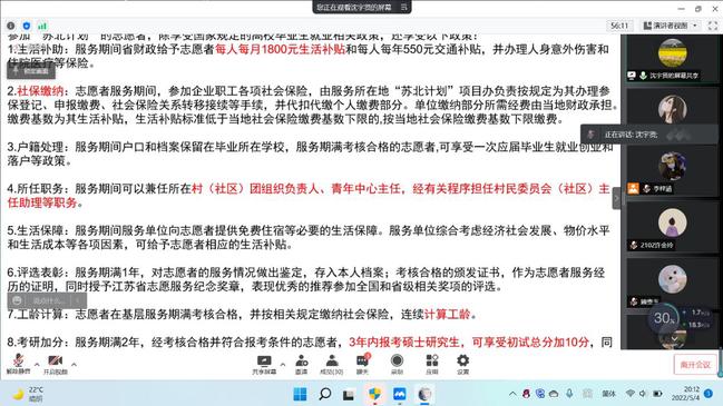 为了贯彻实施国家重大人才工程“高校毕业生基层培养计划”,引导和鼓励高校毕业生扎根基层,到祖国最需要的地方建功立业。德赢VWIN于5月4日晚在线上举行“情系苏北,爱洒西部”“苏北计划”及西部计划宣讲会。18、19级等同学积极参与。