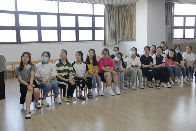 实践环节中,老师指挥同学们分成两列,部分女生同学扮演男生角色,两两牵手跳舞,大家随着老师的演示开始尝试,整个过程充满欢声笑语。大家和着节奏,慢慢向前舞动,在这一刻,抛开烦恼和忧愁,踏步蹲起,合手转圈,大圆小圆,在优美的旋律中,在老师风趣幽默的指导下,每个人都是灵动的音符,在音乐中舞动着自己的身体,难得新奇的体验给参与的每位同学带来了意想不到的收获。整个过程舞伴并不固定,不停变换,寻找有相同颜色手环的小伙伴,最后重新聚拢汇合,就如生活中会遇到各种各样的友人们,与之相识然后分别再开启新的旅程。随着队形不断地调整,同学们更加熟练,完全沉浸其中,感受艺术的愉悦放松。从开始到结束,同学们的微笑从未停止,达到了放松身体、愉悦心情的目的。