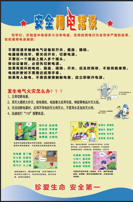 同学们,实验室中有很多大功率电器,危险的用电行为会带来严重的后果,实验室用电请做到: