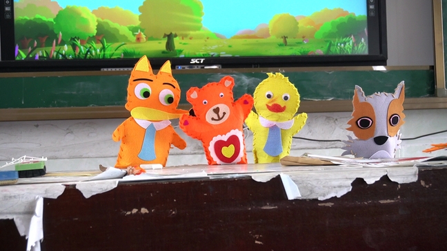 小郑老师教授的课程有手工课《自然的衣服》、绘本课《猜猜我有多爱你》一课。小郑老师充分发挥学前教育专业优势,用绘本课《猜猜我有多爱你》开展了两个课时的主题绘本故事课。第一课时中,运用奥尔夫音乐教育,让孩子们在音乐律动中感受爱,引导学生大胆说出爱,表现爱,一起展开双手拥抱爱。第二课时中,通过教孩子亲手制作手偶、进行手偶剧表演的形式,让学生在动手里感受爱的魔力,利用关键词情景剧,让学生尽情发挥想象力,自由表演。一位同学这样表示道:“我喜欢老师的课堂,接触到了有趣的手偶,也发现手偶原来是这样制作的,真的很有趣!”通过两个课时,让孩子们从多种途径感受爱,用不同方式表达爱。爱,就大胆说出来!
