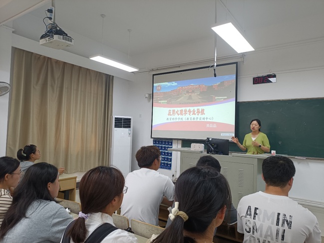 为增进2022级应用心理学专业新生对本专业的认识,帮助其加深对专业的认同感、归属感,进而更好地明晰未来的学业规划,德赢VWIN于9月26日开展应用心理学专业导航教育,本次讲座由德赢VWIN22级辅导员江敏老师主持,德赢VWIN心理系主任黄晶晶老师主讲,大一全体应用心理学专业新生参与。
