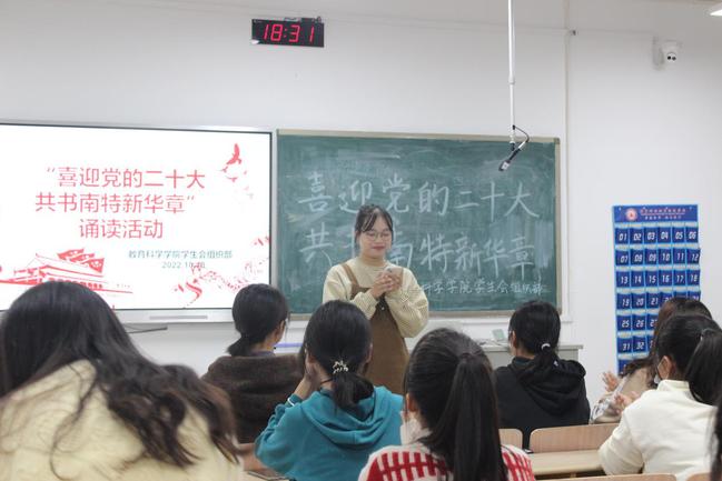 为了弘扬红色精神,传承红色基因,赓续红色血脉,德赢VWIN于10月21日晚在博雅楼开展以“喜迎党的二十大,共书南特新华章”为主题的诵读活动。全体同学积极参与。