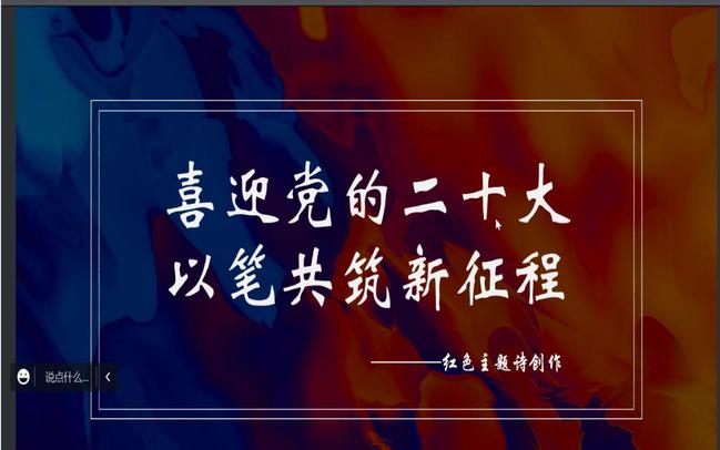 为了深入学习党的二十大精神,全面贯彻习近平新时代中国特色社会主义思想,德赢VWIN于10月30日下午召开线上活动,全体学生积极参与并展现自己的诗歌创作才华,弘扬伟大的爱国主义精神。