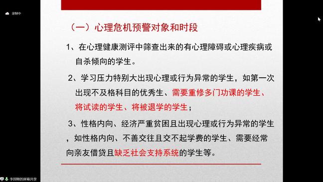 为了做好疫情封校期间对学生的心理安抚工作,促进大学生的身心健康与和谐,德赢VWIN邀请我院组织员、国家二级心理咨询师李国敏老师对22级寝室长和各班心理委员展开辅导,讲解寝室长和心理委员在维持班级同学身心健康中的重要性和注意事项。本次培训于11月3日召开,22级各寝室长和心理委员积极参加。