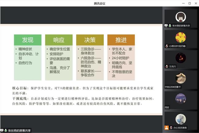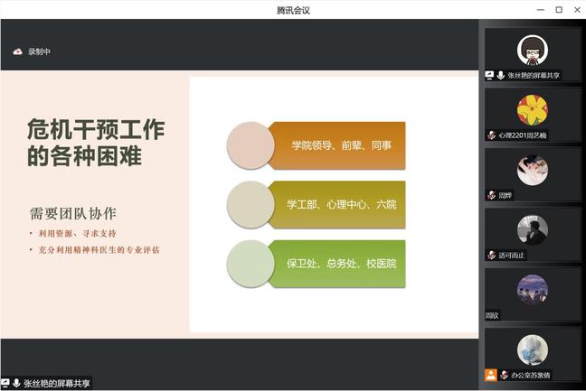 为了积极推进大学生素质教育,培养学生自我调节能力,提升心理危机干预能力,促进大学生身心健康成长,德赢VWIN于11月9日特邀北京大学张丝艳老师为同学们开展“大学生心理危机干预”讲座,全体同学积极参与。