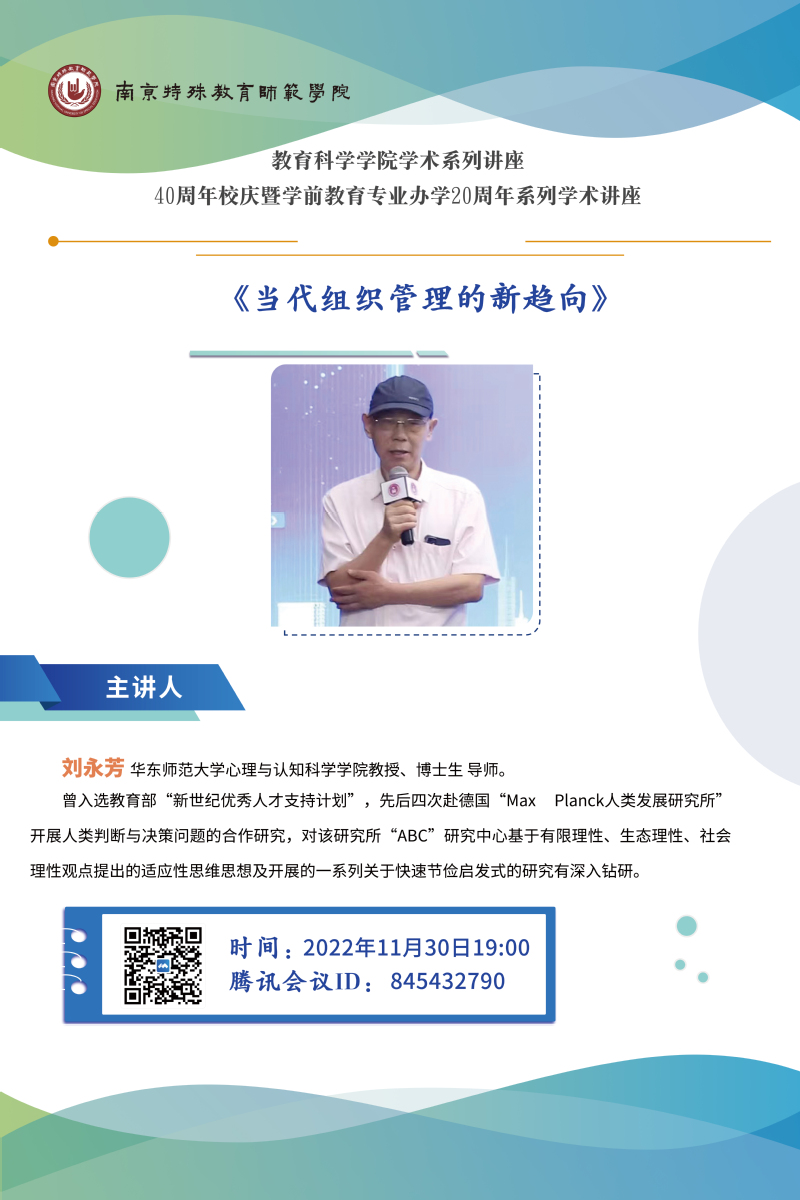 【学术讲座】11月30日刘永芳《当代组织管理的新趋向》