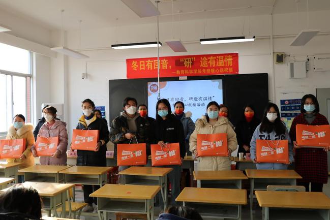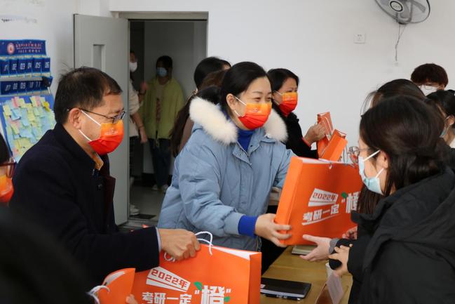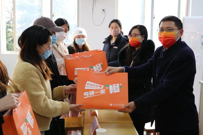 活动接近尾声时,各位领导、老师将学院精心准备的慰问礼品袋和祝福寄语亲手送到考研学子手中,研友们深深感受到了学院作为强有力的后盾在为他们加油打气,表示自己倍受?舞、充满斗志。最后,在场所有领导、老师及与会同学在博雅楼下合影留念,充满活力的橙色手提袋上印着“2022年考研一定‘橙’”的字样,相信同学们今年考研一定能成!在考研号角已经吹响的今天,教科学子定会斗志昂扬、沉着应考,在研究生入学考试中满载而归!(文/刘智慧 董一泽 图/文卓 审核/吴月华 刘新学)