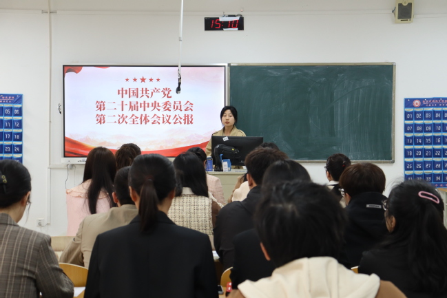 会议伊始,由江敏老师带领同学们回顾了两会的报告内容及发展目标,并带领党员认真学习了公报内容,通过江老师的领学,同学们全面了解了政府工作报告内容,深刻认识到两会召开的意义。