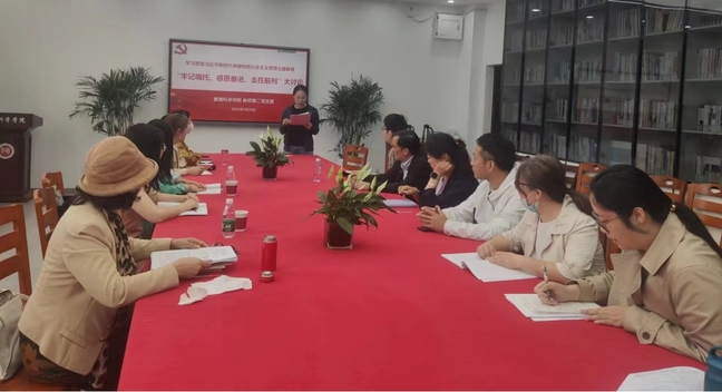 院长刘新学同志对会议做出总结,提出党建工作应和学院中心工作紧密结合,党员教师要重视主动学习,要牢记总书记的殷殷嘱托,用心思考“为谁培养人、培养什么人、怎样培养人”,在教学科研、教育实践活动中展现党员教师的先锋模范作用。