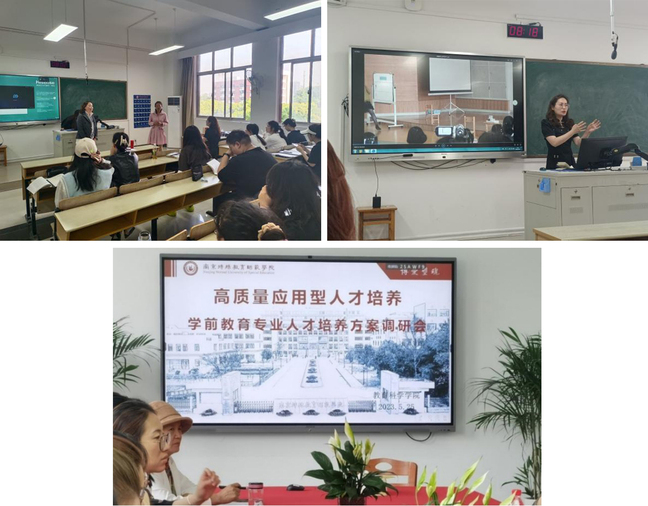 5月25日,学前教育系开展“高质量应用型人才培养--学前教育专业人才培养方案修订研讨会”,学院邀请了栖霞区第七届幼教学科教学带头人、南京栖霞区第一实验幼儿园何欢园长入校为学前教育专业学生开设讲座,并在课后与学前系教师就人才培养进行了深入交流。何园长首先肯定了学校实习生的优秀表现以及学院人才培养方案的准确定位,对学生的学前融合教育素养给予了肯定和支持。同时何欢园长也回应了教师提出的“怎样才能在教学中渗透学生未来工作角色的职责和义务”的一位,何园长结合本园新进教师成长路线进行具体分析,指出人才的培养,除了理论的教学,还应注重培养学生吃苦耐劳的敬业精神。