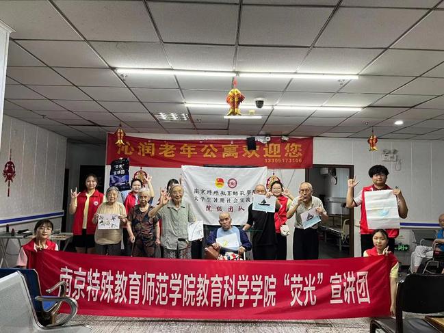 怀敬老之心,走进航天测控精神。2023年7月6日与7日,“荧光”宣讲团带着浓浓关怀走进了沁润老年公寓,以一种特别的方式给沁润老年公寓的老人们进行航天测控精神的宣讲。活动中,宣讲团给老人们带来了航天小故事、航天小问答、诗词诵读、《不忘初心》手语操、戏曲、以笔绘我心等趣味节目,在这一群可爱的人的掌声里,宣讲团成员得到了肯定,相信在今后的时光里,队员们对践行勇于挑战、追求卓越的航天测控精神多了一份动力。在活动的最后,老人们的笑容满面和“荧光”宣讲团的热情洋溢成为了定格的美好。