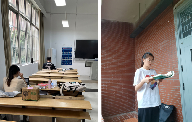 留校同学的学习热情亦如这炎热的盛夏。灯光明亮的教室内,留校考研的学生们正在聚精会神地学习,他们有的在认真刷题,有的在收看讲座,有的在自习室外背单词,体现了当代大学生积极向上、朝气蓬勃的精神面貌。