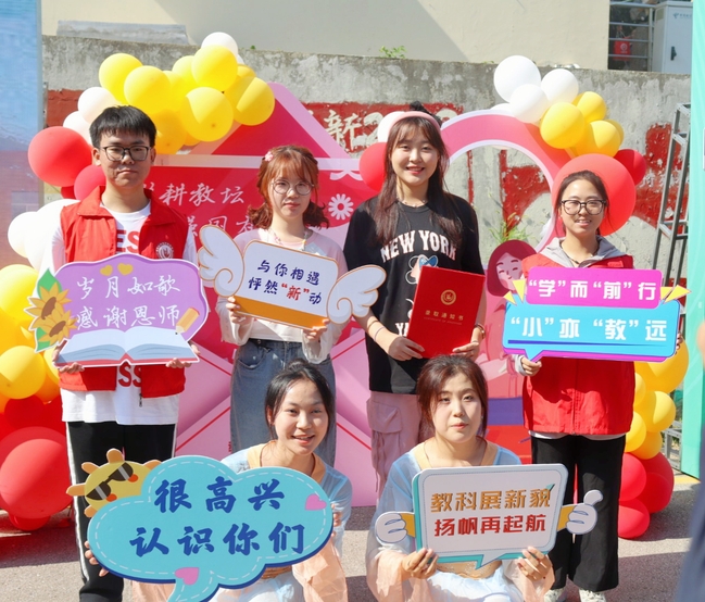 三百多名青春洋溢的新生来到我院,步入人生新的阶段,其中有4位博小爱恰逢报到当天过生日。新的一岁在这里开始,以这种特别有意义的形式开启了自己的大学生活,校党委书记黄军伟、副校长张茂林亲自为4位过生日的博小爱送上了生日蛋糕,黄书记表示今天不仅是她们过生日,也是老师们过教师节,以后的每一个教师节也都是她们的生日,希望她们养成尊师重教的习惯!今天过生日的博小爱表示自己很荣幸能在进入南特的第一天度过她们的19岁生日,感谢学院为她们准备这样一份生日礼物,并深切地感受到了属于教科院这个大家庭的温暖与用心,表示以后的日子里要更加努力学习,树立远大志向,与教科院共成长,奔赴美好精彩未来,用自己的行动向老师们致敬,祝福老师们教师节快乐!