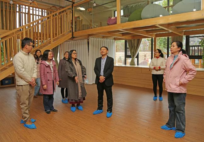 首先刘新学院长在奇色花幼儿园创始人蔡蕾的带领下参观了幼儿园的户外环境,并了解了每一处区域环境创设的原理和意义。刘新学院长对奇色花幼儿园的环境创设给予了高度的认可和评价,表示每一处环境都充分利用了空间,并发挥了它们最大的教育功能,同时认为奇色花幼儿园是第一个设计视障人士行走体验通道的幼儿园,且做了很好的无障碍环境设计。