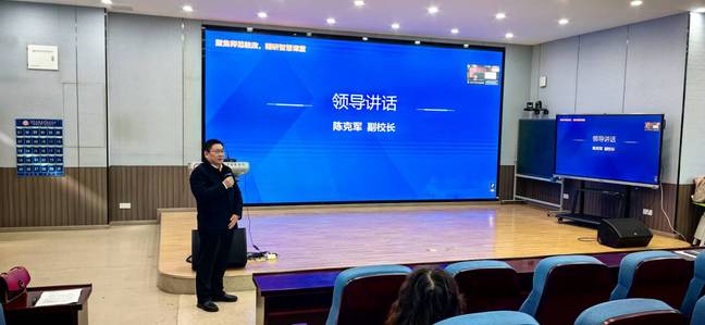成熟的研习离不开评课。主持人赵老师邀请了边玉佳同学的校外指导老师刘燕老师、校内指导老师李颖老师、课程授课老师刁春好老师分别对边玉佳的本节教学表现进行点评。几位老师在对边玉佳同学的进步与提升作肯定后,也指出了课堂教学过程中可以改进的地方并提出建议。此外,听课人员中的学生代表也表达了自己听课的感受,之后徐莉副院长也对边玉佳同学说课过程中的不足提出了建议。陈克军副校长和刘新学院长在百忙之中也来参加了此次活动,并对边玉佳同学的表现作出极大的肯定和鼓励,对师范生未来的进步表示期待。陈克军副校长鼓励同学们:“作为师范院校,我们培养的是未来的老师,所以非常有必要了解一线教师他们目前所进行的教学教研情况。关于智慧教学过程中设备的利用,也希望其他师范生同学有机会要多接触。这样的活动要多开展,并且坚持下去,我们既然有智慧教学的设备和条件,就要把它用好。这能够让我们了解一线教学的实际情况,学科教师在给师范生授课时,也可以依据实例进行教学讲解。”