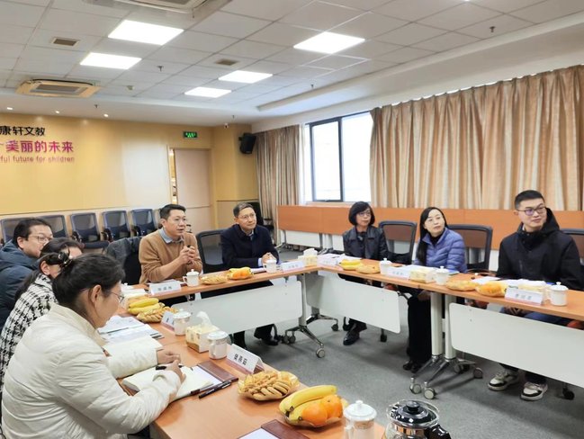 11月30日下午,南京特殊教育师范学院德赢VWIN院长刘新学、副院长张丽莉、学前教育系主任金玲、专任教师曹越星一行4人来到南京康轩文教图书有限公司实地走访考察,公司总经理陈建维、副总经理吴惠洁、中心负责人郑文涛和中心主任樊燕茹等热情接待了刘新学院长一行,并进行了深入的交流。