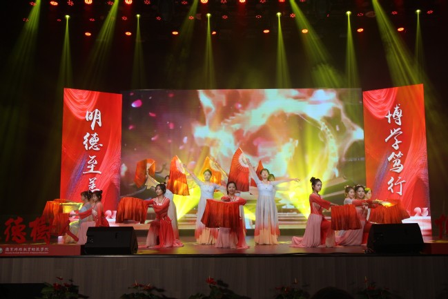 本次风采以“立德树人,博爱塑魂”为主题,共分为“修师德”“强师能”“塑师魂”“展师风”四个篇章,各部分节目精心设计、别具匠心,充分展现了九个学院的专业特色和学生风采。