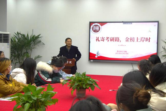 随后,刘新学院长对考研学子们进行慰问。刘院长鼓励同学们要坚定信心,调整好心态,以轻松愉悦的心情,勇敢面对考研的挑战,努力拼搏,一定能够取得优异的成绩。各位领导和老师还指出,我院非常重视考研工作,会为考研学生提供良好的学习环境和便利条件,同学们若有困难,各位老师们定会全力帮助,希望同学们以最好的状态迎接考研的挑战,期待大家明年春暖花开时捷报频传。