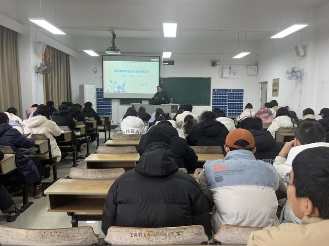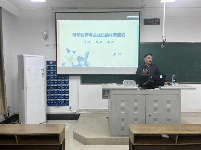 首先,沈科老师结合自身经验和实践所得,向广大师生分享了教师成长之路,有力地指出面临当下的人口形势,师范生更应刻苦学习,培养过硬本领,做一名为人民服务的“好”老师。随后,沈科老师从“守心”“静心”“安心”三个方面着手,分别强调了有关小学教育的以下三点内容:一、“教育为人生”是青年教师专业成长目标回归;二、“教书育人真本领”是青年教师专业成长的内容回归;三、“安静扎实且保持纯粹”是青年教师专业成长的态度回归。阐释了“真正走得远的是众人同行”的道理,层层递进,由浅入深。最后,就专业教师如何做到朴素回归的问题,沈科老师明确指出要做到理解学科、理解教学、理解学生、理解技术,坚持修炼内功,站稳讲台。为自己做出清晰的成长规划,例如各项竞赛的报名、论文的研究与撰写、公开课的参与与举办等,做到分层达标,磨练自己。